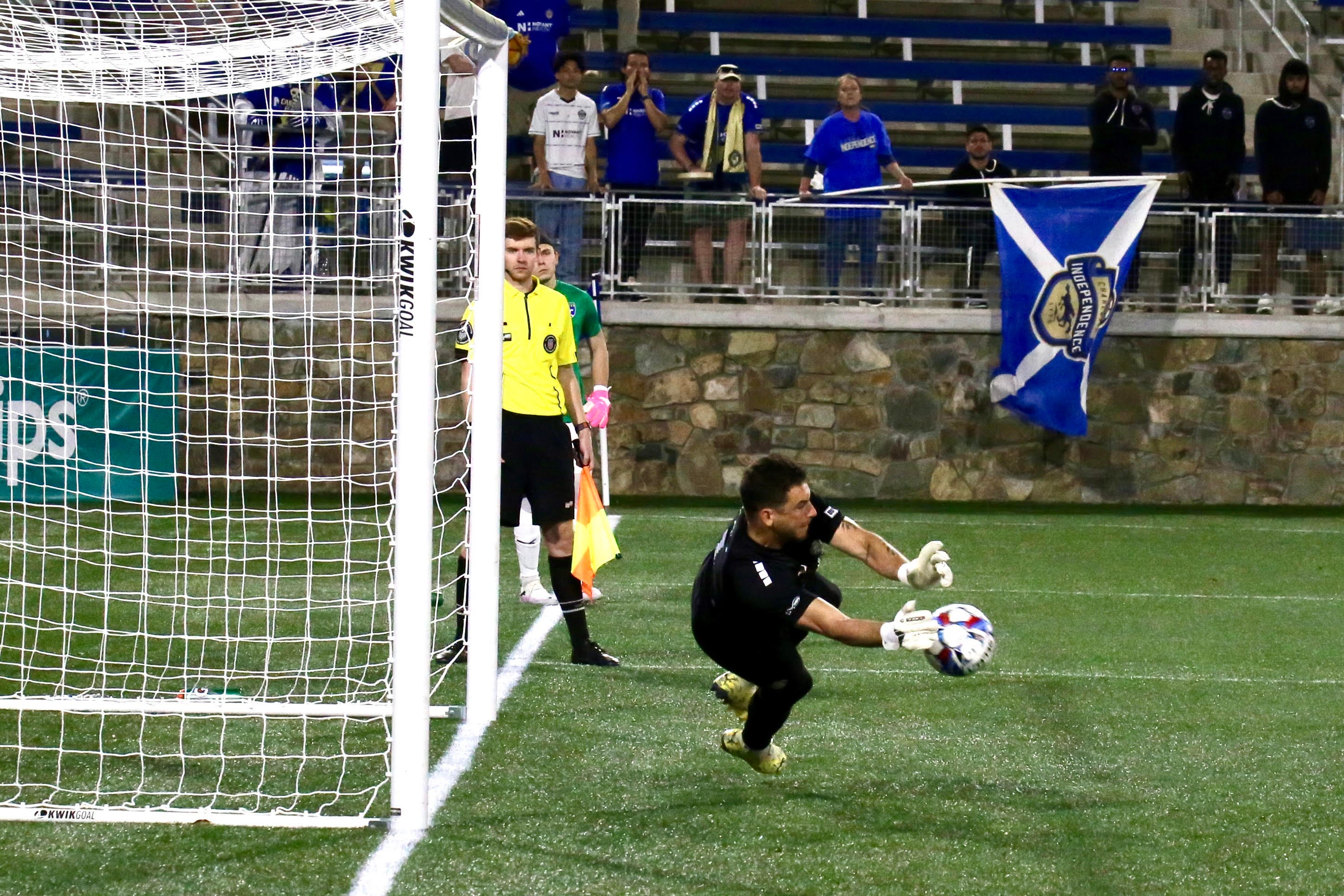 At the top of the third round of PKs, Luis Álvarez sent his shot high above the crossbar, and Rhode Island equalized in response, 2-2. After trading goals in round four, Charlotte Independence captain Clay Dimick sent the ball too high, putting the entire match on the shoulders of Rhode Island’s Joe Brito and Pack. The tension was palpable.